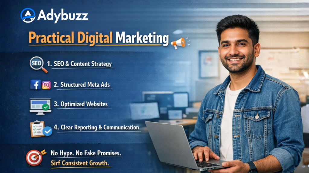 Digital marketing koi magic button nahi hai, aur har campaign successful nahi hoti; sahi testing, data analysis, strategy improvement aur consistency se long-term growth possible hoti hai.